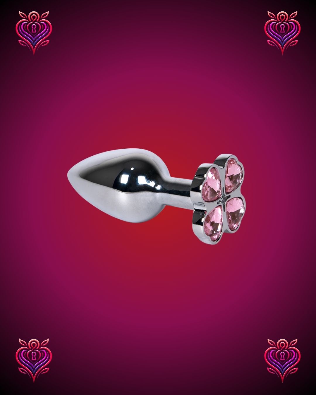 Un diseño único y sofisticado con base en forma de flor, cuyos pétalos están formados por pequeñas joyas en forma de corazón. Perfecto para quienes buscan un toque elegante y sensual en sus juegos íntimos.